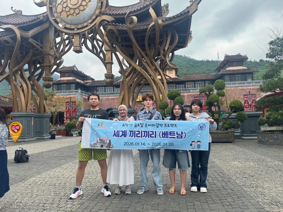 본문 시작 홈으로 커뮤니티 학과안내 교수소개 학과과정 커뮤니티 홈페이지가이드 학과사진첩 공지사항 취업정보 학과사진첩 학과행사 동아리 학생회 교우소식 학과사진첩 페이스북 트위터 프린트 겨울방학 해외 배낭여행-다낭 법학과 534 2026-01-22 경영학과 대학원생 2명(여학생) , 경영학과 4학년생 2명, 법학과 1명. 목록 이전겨울방학 해외 배낭여행-대만 다음 겨울방학 해외 배낭여행-푸꾸옥 담당부서 : 법학과 담당자 : - 연락처 : 043-649-1764 최종수정일 : 2024-10-26 만족도조사 만족도 조사 이 페이지에서 제공하는 정보에 대하여 만족하시나요? 매우만족 만족 보통 불만족 매우불만족