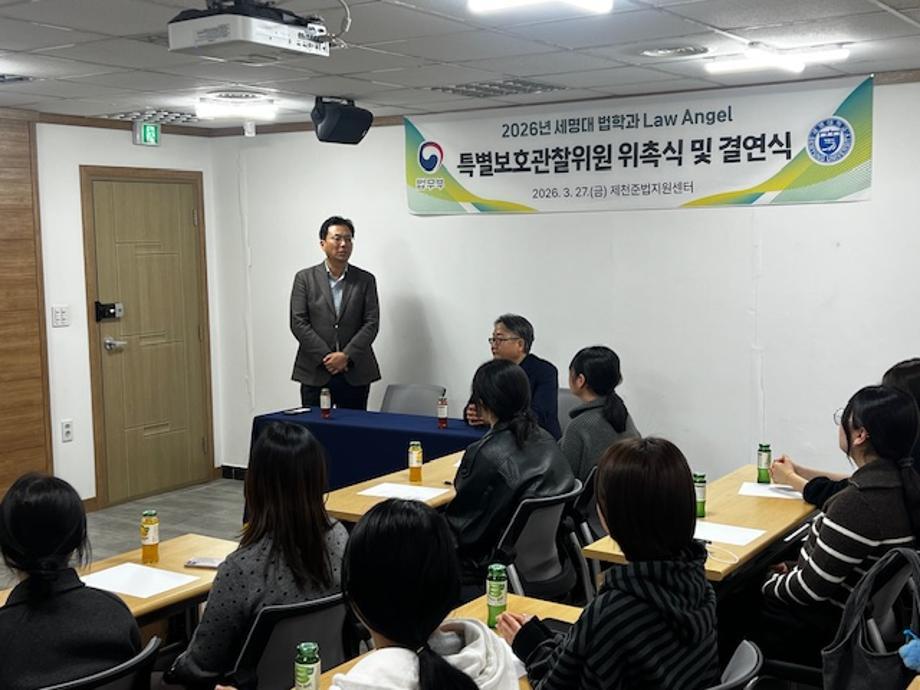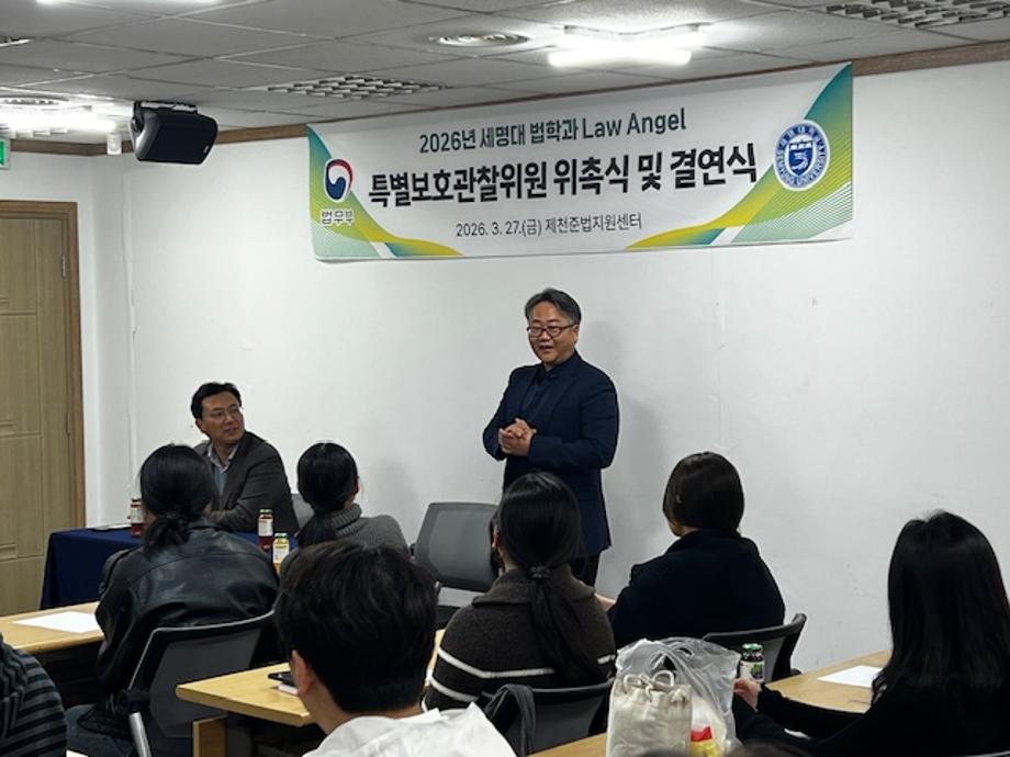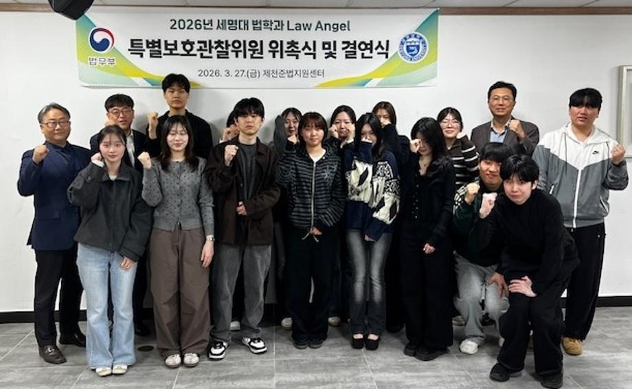 본문 시작 홈으로 커뮤니티 학과안내 교수소개 학과과정 커뮤니티 홈페이지가이드 학과사진첩 공지사항 취업정보 학과사진첩 학과행사 동아리 학생회 교우소식 학과사진첩 페이스북 트위터 프린트 2026. 03. 27. Law Angel 위촉식 법학과 240 2026-04-01 지난 3월 27(금) 15:30에 제천보호관찰소에서 로엔젤 학생들이 특별보호관찰위원 위촉식을 진행하였습니다. 목록 이전겨울방학 해외 배낭여행-푸꾸옥 담당부서 : 법학과 담당자 : - 연락처 : 043-649-1764 최종수정일 : 2024-10-26 만족도조사 만족도 조사 이 페이지에서 제공하는 정보에 대하여 만족하시나요? 매우만족 만족 보통 불만족 매우불만족