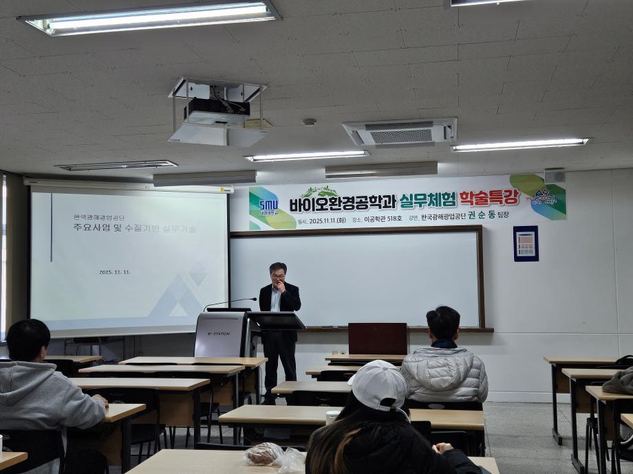 본문 시작 홈으로 커뮤니티 학과소개 교수소개 학과과정 커뮤니티 홈페이지가이드 학과활동 및 행사 학과공지 채용정보 학과활동 및 행사 전공자료실 동아리 학과활동 및 행사 페이스북 트위터 프린트 바이오환경실무체험 학술특강 5차 실시 환경에너지학과 336 2025-11-11 <학술특강 5차> 1. 주제 : 수질지반 실무기술 소개 2. 일시 : 2025년 11월 11일(화요일) 15:30 ~ 18:20 3. 장소 : 이공학관 518호 4. 강사 : 권*동 팀장 목록 이전바이오환경실무체험 학술특강 4차 실시 담당부서 : 환경에너지학과 담당자 : - 연락처 : 043-649-1337 최종수정일 : 2024-10-26 만족도조사 만족도 조사 이 페이지에서 제공하는 정보에 대하여 만족하시나요? 매우만족 만족 보통 불만족 매우불만족