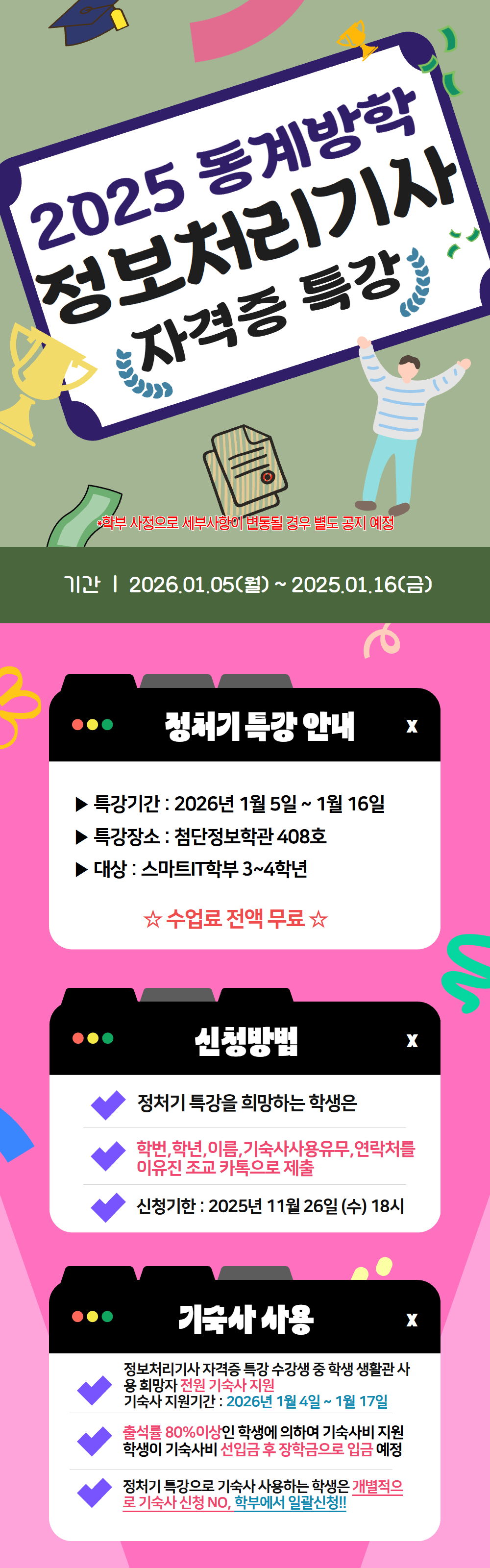 ◈ 2025 겨울방학 정보처리기사 특강 신청 안내 ◈