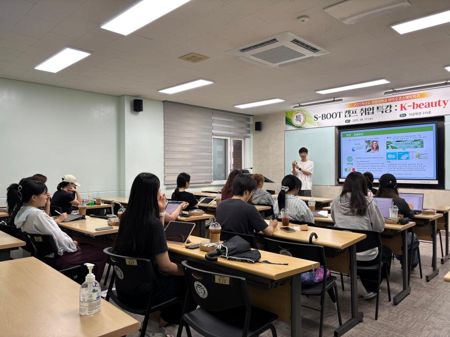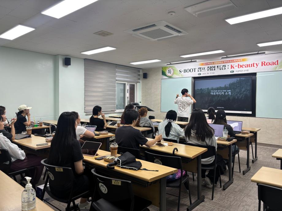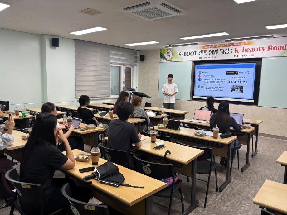 본문 시작 홈으로 커뮤니티 학과소개 학과과정 대학원 커뮤니티 연구동아리 홈페이지가이드 포토갤러리 학과공지 채용정보 학과일정 포토갤러리 유튜브 인스타그램 취업현황 학생회 조직도 졸업생 숏터뷰 포토갤러리 페이스북 트위터 프린트 2025학년도 1차 S-BOOT 특강_K-Beauty Road 바이오코스메틱학과 30 2025-10-13 2025학년도 1차 S-BOOT 특강을 진행하였습니다. 목록 이전2025학년도 1차 화장품생명공학세미나 다음 2025학년도 2차 화장품생명공학세미나 담당부서 : 바이오코스메틱학과 담당자 : 이천일 연락처 : 043-649-1638 최종수정일 : 2024-10-26 만족도조사 만족도 조사 이 페이지에서 제공하는 정보에 대하여 만족하시나요? 매우만족 만족 보통 불만족 매우불만족