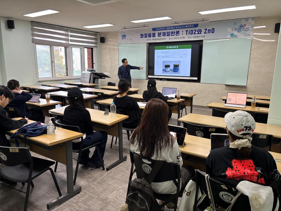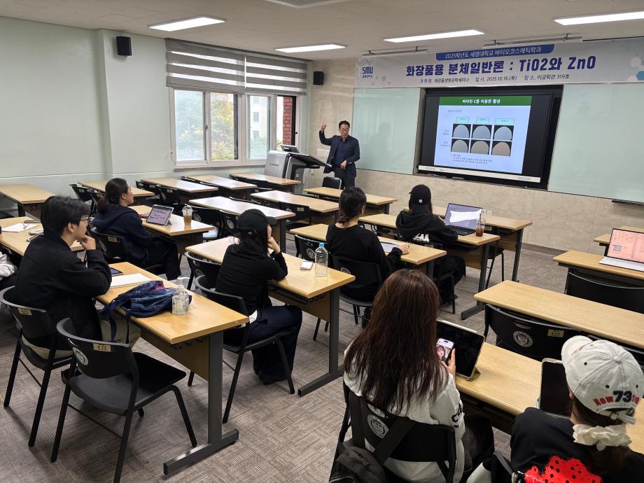 본문 시작 홈으로 커뮤니티 학과소개 학과과정 대학원 커뮤니티 연구동아리 홈페이지가이드 포토갤러리 학과공지 채용정보 학과일정 포토갤러리 유튜브 인스타그램 취업현황 학생회 조직도 졸업생 숏터뷰 포토갤러리 페이스북 트위터 프린트 2025학년도 3차 화장품생명공학세미나 바이오코스메틱학과 54 2025-10-17 2025학년도 3차 화장품생명공학세미나를 진행했습니다. 목록 이전2025학년도 2차 S-BOOT 특강_Evolution of K-Beauty 담당부서 : 바이오코스메틱학과 담당자 : 이천일 연락처 : 043-649-1638 최종수정일 : 2024-10-26 만족도조사 만족도 조사 이 페이지에서 제공하는 정보에 대하여 만족하시나요? 매우만족 만족 보통 불만족 매우불만족