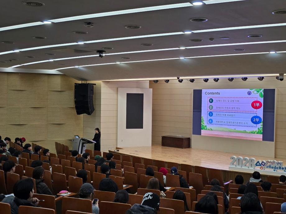본문 시작 홈으로 커뮤니티 게시판 대학소개 교수소개 교양교육과정 교양교육 프로그램 커뮤니티 게시판 입학안내 홈페이지가이드 자료실 공지사항 자료실 학생 커뮤니티 취업정보 CHARM리더십특강 CHARM리더십특강 CHARM커뮤니케이션 제천문화탐방과 스토리텔링 CHARM인문학콘서트~2018 향토문화탐방~2018 특강 및 기타 행사 포토 갤러리 CHARM리더십특강 페이스북 트위터 프린트 2026-1학기 CHARM리더십특강 1주차 강의 교양대학 85 2026-03-05 2026-1학기 CHARM리더십특강 1주차 강의 정진화교수님_장애와 장애인에 대한 올바른 이해 목록 이전2025-2학기 CHARM리더십특강 보강주차 강의 다음 2026-1학기 CHARM리더십특강 2주차 강의 담당부서 : 교양대학 담당자 : - 연락처 : 043-649-7065 최종수정일 : 2024-10-26 만족도조사 만족도 조사 이 페이지에서 제공하는 정보에 대하여 만족하시나요? 매우만족 만족 보통 불만족 매우불만족