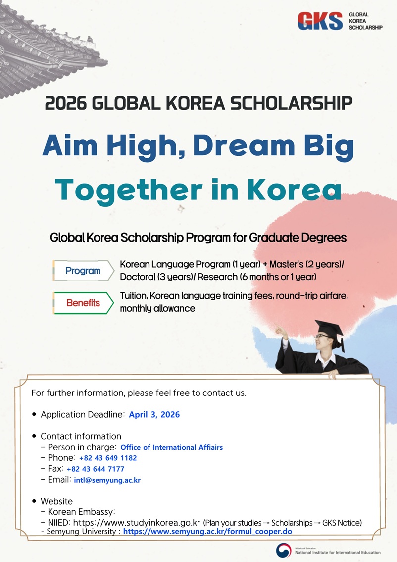 2026 GLOBAL KOREA SCHOLARSHIP Graduate Degree(GKS-G) Program