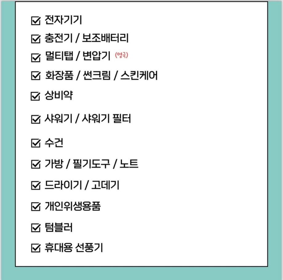 말레이시아로 교환학생을 가는 학우들을 위하며 간단한 준비물을 정리해 보았습니다!
