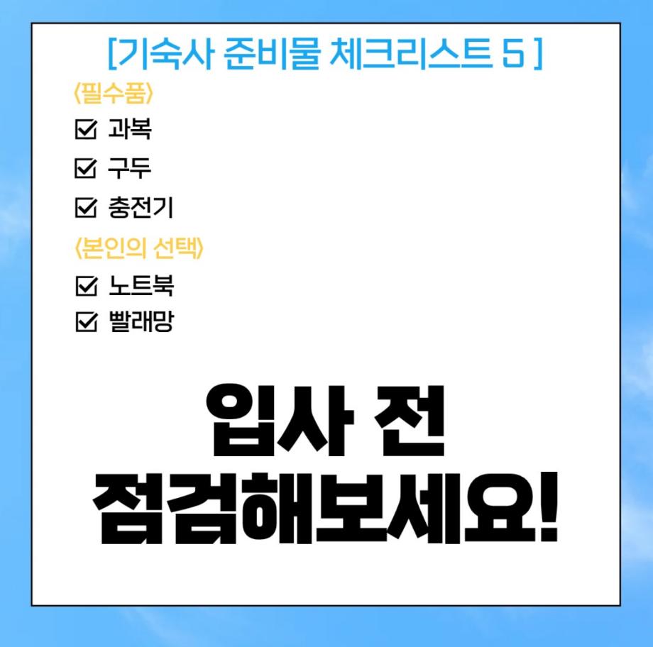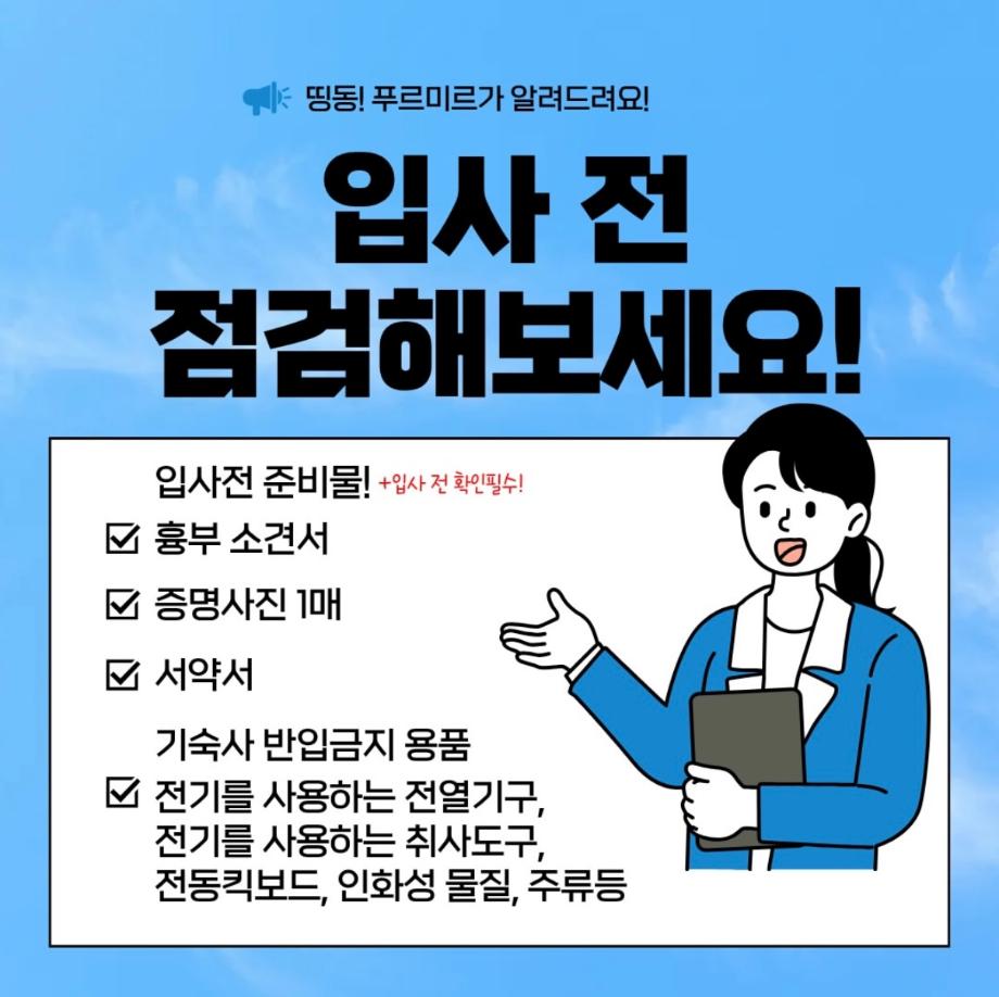 본문 시작 홈으로 커뮤니티 학과소개 입학정보 교과과정 커뮤니티 홈페이지가이드 포토갤러리 SNS 소통 공간 포토갤러리 공지사항 동아리 포토갤러리 페이스북 트위터 프린트 기숙사 체크리스트 항공서비스학과 631 2026-03-25 안녕하십니까 세명대학교 항공서비스학과 온라인 홍보국 푸르미르 입니다 오늘은 세명대학교 기숙사 입사를 앞둔 학생들을 위해 입사 전 반드시 확인해야 할 사항을 안내드립니다 입사 일정 및 세부 유의사항을 사전에 확인하여 입사에 차질이 없도록 준비해주시기 바랍니다 소중한 꿈을 품고 그 누구보다 높이 오를 여러분들을 저희 "푸르미르"가 항상 응원하겠습니다 궁금한 사항이 있으시다면 언제든지 SNS로 연락 주십시오 목록 이전2월 다이어리 다음 말레이시아 추천 맛집
