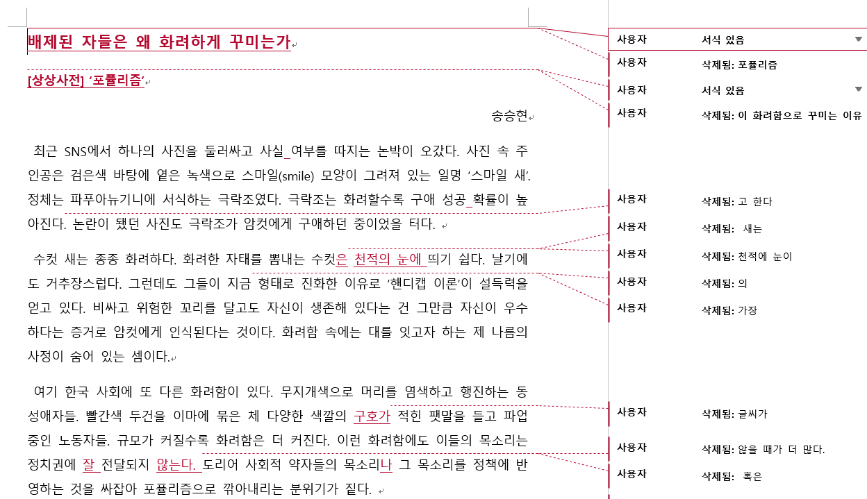 <단비뉴스>에 올라오는 기사의 원본과 최종본은 얼마나 차이날까요? 교수님들이 어떻게 기사를 수정하셨는지 배우고 싶으면 이곳 '단비뉴스 편집실'에 자주 들어오세요. 첨삭한 원본과 수정본, 그리고 교수님들의 코멘트를 보실 수 있습니다.