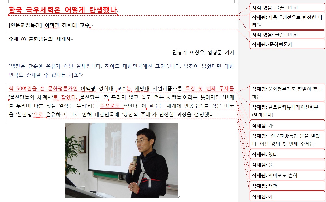 <단비뉴스>에 올라오는 기사의 원본과 최종본은 얼마나 차이날까요? 교수님들이 어떻게 기사를 수정하셨는지 배우고 싶으면 이곳 '단비뉴스 편집실'에 자주 들어오세요. 첨삭한 원본과 수정본, 그리고 교수님들의 코멘트를 보실 수 있습니다.