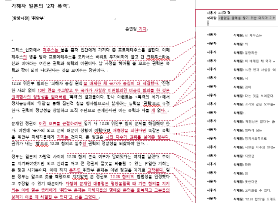 오늘 기사는 윤연정 기자의 칼럼 <가해자 일본의 '2차 폭력'>입니다. 윤연정 기자는 12.28 위안부 합의는 ‘피해자 중심 원칙’을 배제한 채 국가가 중심이 돼 체결됐고, ‘진정한 사죄’ 없이 10만 엔을 주고받고 두 국가가 사실상 이면합의인 비공식 합의를 한 것은 권력행사의 정당성을 잃어버린 ‘폭력’의 결과물이다 이야기하는데요. 자세한 내용은 기사를 통해 확인하세요!