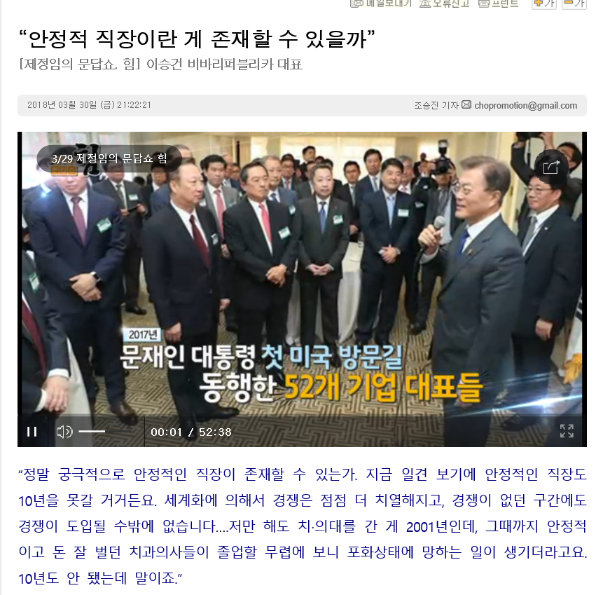 본문 시작 게시판 대학원소개 교수/학생소개 교과과정 입학/학사안내 공지사항 게시판 저널리즘연구소 홈페이지가이드 단비뉴스 편집실 단비뉴스 편집실 단비서재 세저리 이야기 언론사 채용공고 언론계 동향 언시 후기 사진첩 언론 현장에서 단비뉴스 편집실 페이스북 트위터 프린트 안정적 직장이란 게 존재할 수 있을까 이연주 조회 : 5465 등록일 : 2018-03-30 목록 이전배트맨과 하비덴트 다음 서울 아케이드 프로젝트 댓글수 1개 애플 2018-03-30 22:14:48기사전문을 확인하려면 아래 링크를 클릭하세요!http://www.danbinews.com/news/articleView.html?idxno=10127 * 작성자 * 내용 댓글은 로그인 후에 이용해 주세요. 로그인