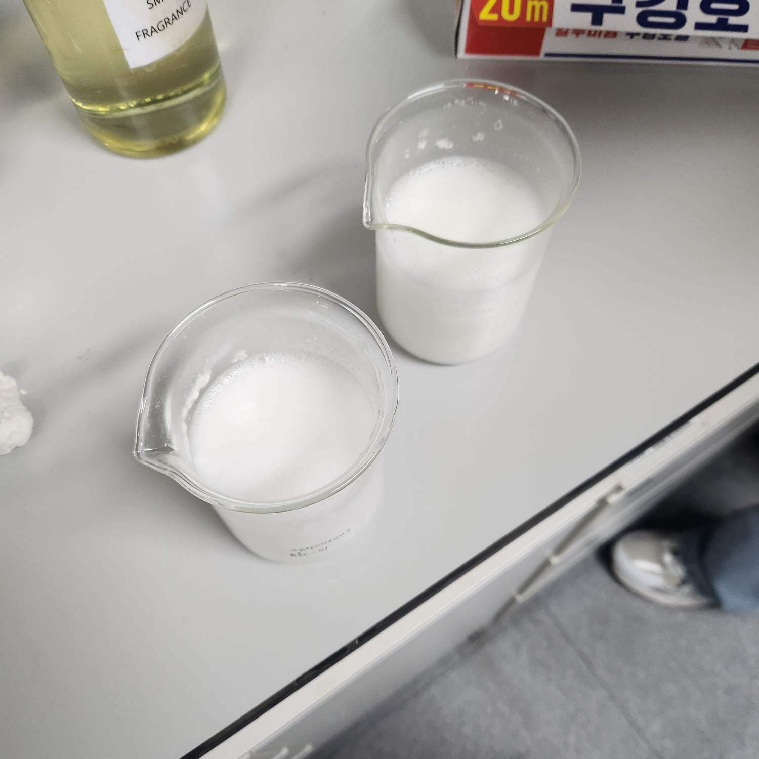 핸드워시를 제조하며 들어가는 성분 미리스틱산과 koh의 반응과 산과 알칼리의 비율의 따른 반응을 알아갔으며, 핸드워시에 대해 이해해보는 시간이였습니다.