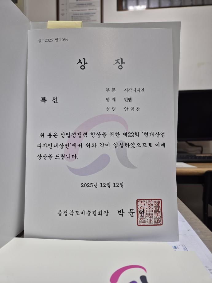 본문 시작 홈으로 학과자랑 학과소개 학과과정 시영소식 입학/취업 AI 학과자랑 SNS소통 홈페이지가이드 학과갤러리 학과자랑 학과갤러리 동아리 졸업전시회 학과갤러리 페이스북 트위터 프린트 제22회 현대산업디자인대상전 - 우수상, 특선 등 수상작 시각영상디자인학과 127 2025-12-13 우수상 - 1작, 특선 - 3작 입선 다수를 수상하엿습니다 목록 이전K-콘텐츠스쿨 의병제 문화 개발 교육프로그램 - 시각영상디자인학과 참여 학생 전시 담당부서 : 시각영상디자인학과 담당자 : - 연락처 : 043-649-1726 최종수정일 : 2024-10-26 만족도조사 만족도 조사 이 페이지에서 제공하는 정보에 대하여 만족하시나요? 매우만족 만족 보통 불만족 매우불만족