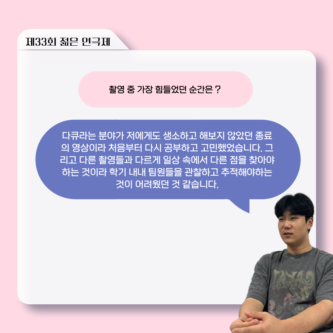 다큐 pd로서 참여하며 느낀점들에 대해 인터뷰하는 시간을 가졌습니다!