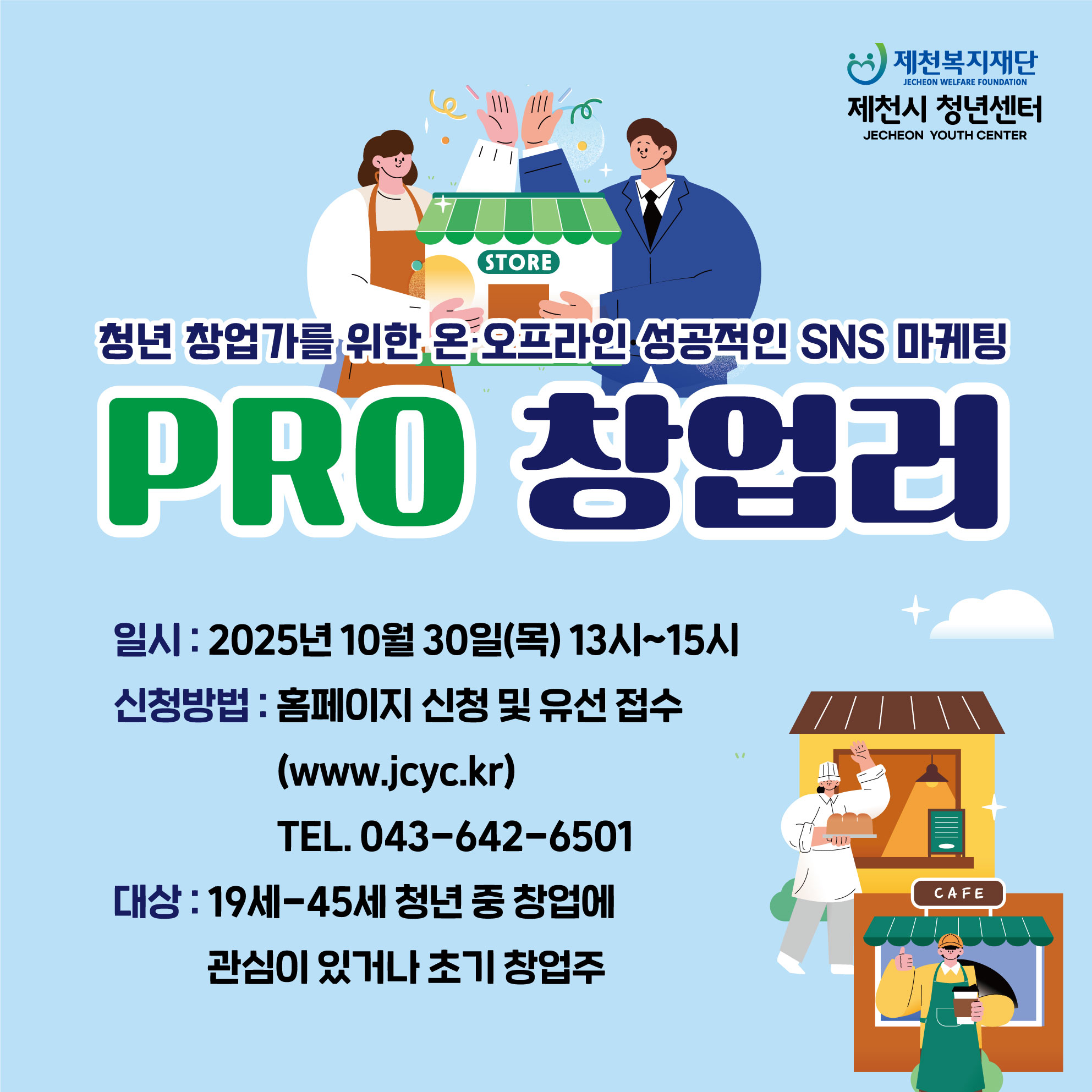 [모집안내] 제천시 청년센터 PRO 창업러 참여자 모집 안내