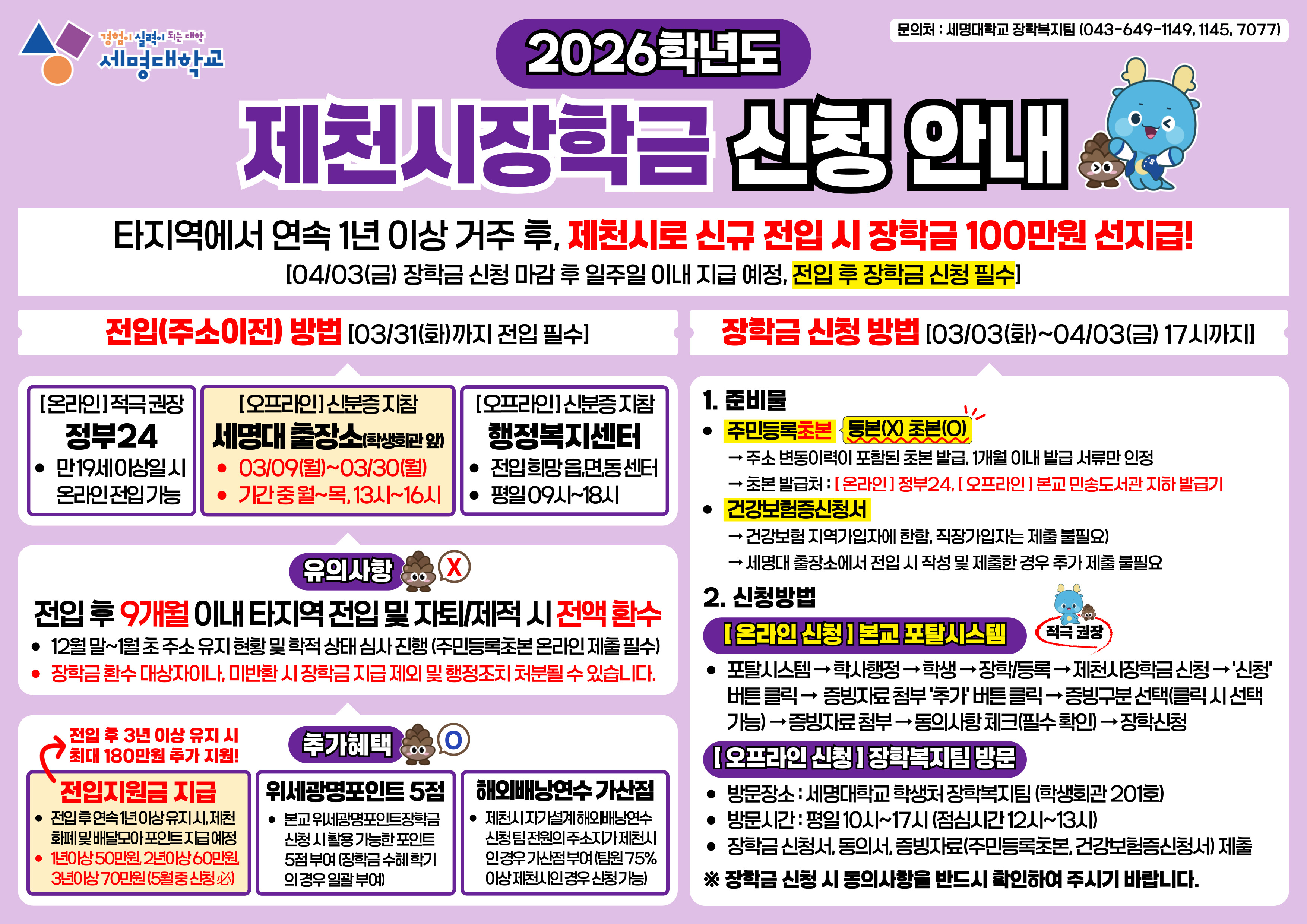 [신편입 및 재학생 필독] 2026학년도 제천시장학금 신청 및 제천시 신규 전입 안내