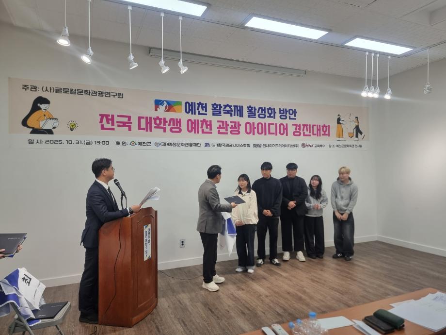본문 시작 홈으로 학과소개 커뮤니티 학과소개 교육 홈페이지가이드 학과행사 학과장인사말 교수소개 학과행사 학과행사 페이스북 트위터 프린트 [예천 활축제 활성화 방안] 전국 대학생 예천 관광 아이디어 경진대회 호텔경영학과 402 2025-11-07 전국 대학생 예천 관광 아이디어 경진대회에서 3학년 장O빈, 이O준, 윤O빈 학생 2학년 정O찬, 김O민 학생이 우수상을 수상 하였습니다. 목록 이전학과 견학_2025년 제천국제한방천연물산업엑스포 다음 안동 하회마을 공모전 만족도조사 만족도 조사 이 페이지에서 제공하는 정보에 대하여 만족하시나요? 매우만족 만족 보통 불만족 매우불만족