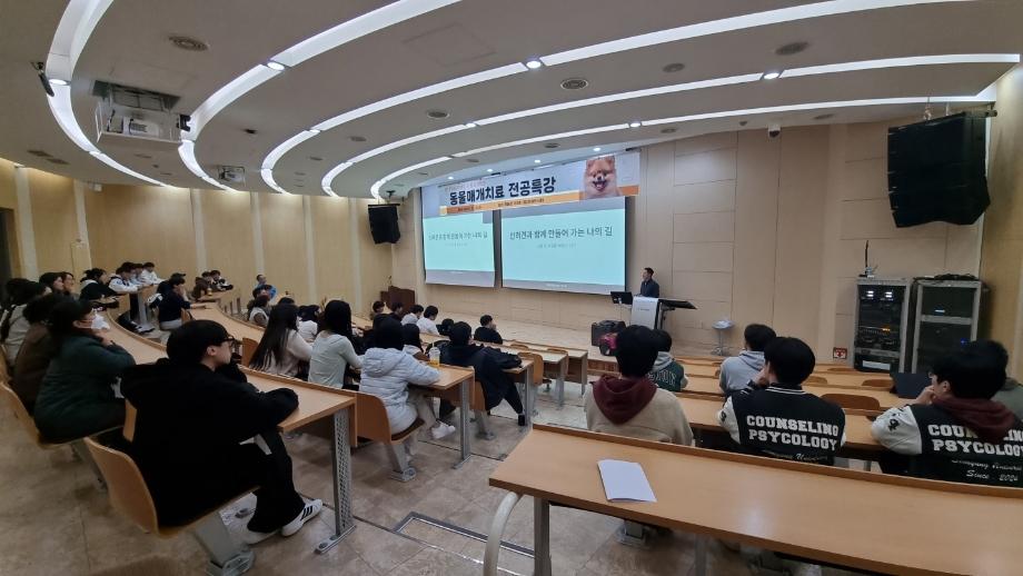 본문 시작 홈으로 학과 커뮤니티 학부소개 교수소개 교육목표 입학안내 학과 커뮤니티 대학원 커뮤니티 홈페이지가이드 학과 갤러리 학과소식 학사일정 학과 갤러리 학과 갤러리 페이스북 트위터 프린트 동물매개치료 전공특강 상담심리학과 8 2025-11-10 안녕하세요 세명대학교 상담심리학과입니다! 지난 5일 학술관 컨퍼런스홀에서 동물매개치료 전공특강이 진행되었습니다! 동물매개치료 관련 이론을 배우며 전공 능력을 함양할 수 있는 뜻깊은 시간이었습니다 :) 목록 다음 2025학년도 Step Up! SMU창업캠프 및 경진대회 만족도조사 만족도 조사 이 페이지에서 제공하는 정보에 대하여 만족하시나요? 매우만족 만족 보통 불만족 매우불만족