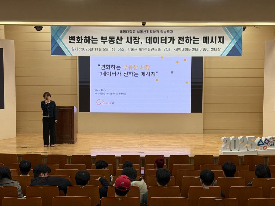 학술제 특강으로 "변화하는 부동산 시장, 데이터가 전하는 메시지"에 관하여 특강을 해주신 KB부동산빅데이터센터 이종아 센터장님께 진심으로 감사드립니다.
