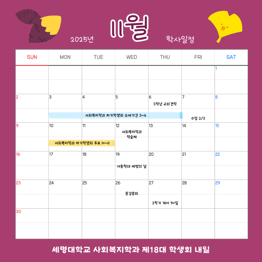 본문 시작 홈으로 커뮤니티 학과소개 교수소개 교육과정 현장실습 및 취업정보 커뮤니티 홈페이지가이드 학사일정 학과공지 학사일정 학생회 동아리 학생 소통 광장 포토갤러리 전공자료실 서식자료실 학사일정 페이스북 트위터 프린트 11월 학사 일정 사회복지학과 482 2025-10-30 11월 학사 일정 입니다. 목록 이전10월 학사 일정 다음 12월 학사 일정 담당부서 : 사회복지학과 담당자 : - 연락처 : 043-649-1799 최종수정일 : 2024-10-26 만족도조사 만족도 조사 이 페이지에서 제공하는 정보에 대하여 만족하시나요? 매우만족 만족 보통 불만족 매우불만족
