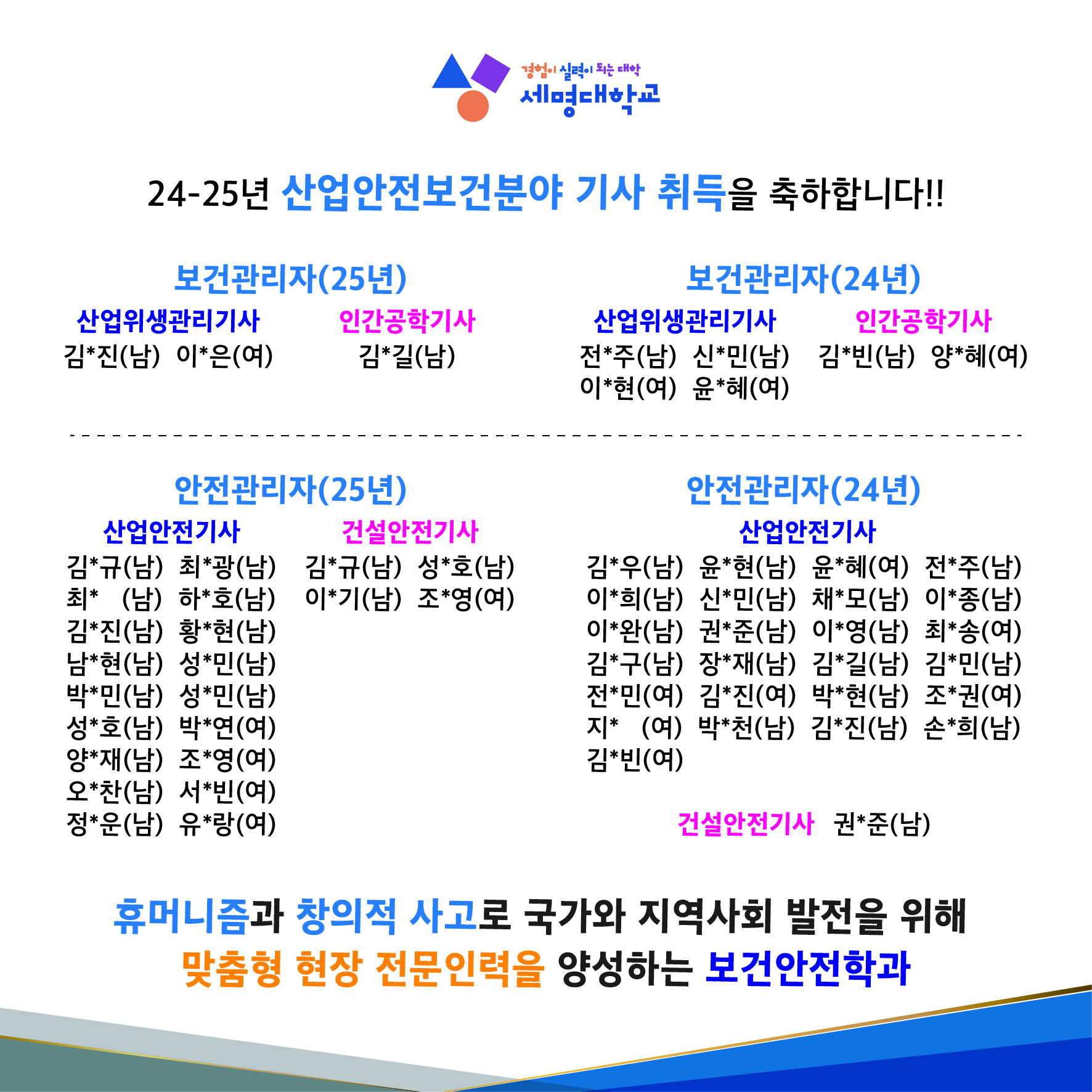 본문 시작 홈으로 커뮤니티 학과소개 진로 및 취업 교수소개 학과과정 커뮤니티 홈페이지가이드 학과공지 학과공지 학사일정 포토갤러리 학생회 학과영상 보건안전학과 인스타 보건안전학과 블로그 학과공지 페이스북 트위터 프린트 24-25년 보건안전학과 자격증 취득을 축하합니다! 보건안전학과 조회 : 60 등록일 : 2026-01-09 24-25년 보건안전학과 자격증 취득을 축하합니다! 목록 이전2025년도 겨울학기 현장실습 인원 다음 2025년 HJ중공업(한진중공업) 공채 합격을 축하합니다! 담당부서 : 보건안전학과 담당자 : - 연락처 : 043-649-1777 최종수정일 : 2024-10-26 만족도조사 만족도 조사 이 페이지에서 제공하는 정보에 대하여 만족하시나요? 매우만족 만족 보통 불만족 매우불만족