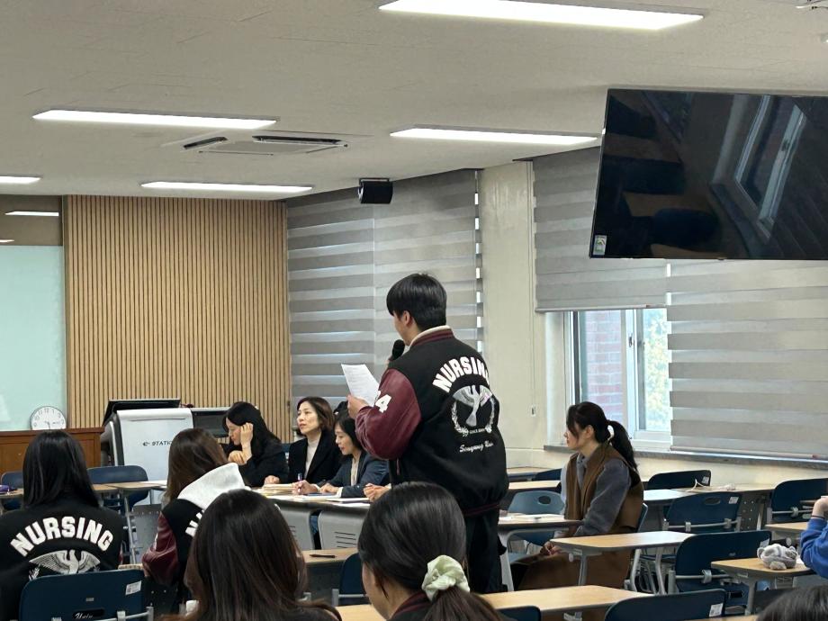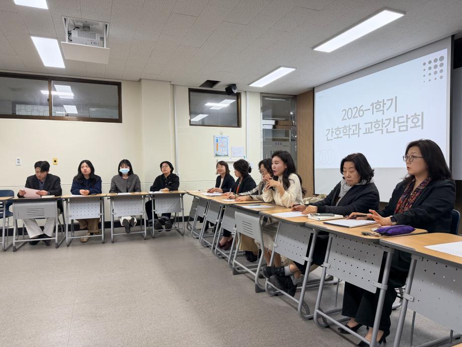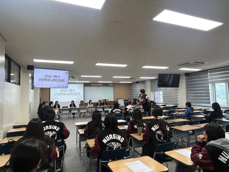 본문 시작 홈으로 커뮤니티 학과소개 교수소개 교육과정 학과소식 학과특성화 사업 커뮤니티 홈페이지가이드 포토갤러리 학사일정 포토갤러리 학생회 학과동아리 학과 취업정보 동창회 학과운영개선의견 발전기금 포토갤러리 페이스북 트위터 프린트 간호학과, 2026학년도 1학기 교학간담회 개최 간호학과 276 2026-04-09 간호학과는 4월 7일(화) 재학생, 교수진 및 행정실이 함께 참여하는 교학간담회를 개최하였다. 이번 간담회는 학습 환경 및 수업 운영, 학과 생활 전반에 대한 다양한 의견을 공유하고 소통하기 위해 마련되었다. 참석자들은 서로의 의견을 경청하며 학과 발전과 교육의 질 향상을 위한 방향에 대해 논의하는 시간을 가졌다. 간호학과는 앞으로도 구성원 간의 지속적인 소통을 통해 보다 나은 교육 환경을 조성해 나갈 예정이다. 목록 이전🧠세명대학교 간호학과, 3학년 대상 ‘치매파트너 교육’ 실시 담당부서 : 간호학과 담당자 : - 연락처 : 043-649-1357 최종수정일 : 2024-10-26 만족도조사 만족도 조사 이 페이지에서 제공하는 정보에 대하여 만족하시나요? 매우만족 만족 보통 불만족 매우불만족