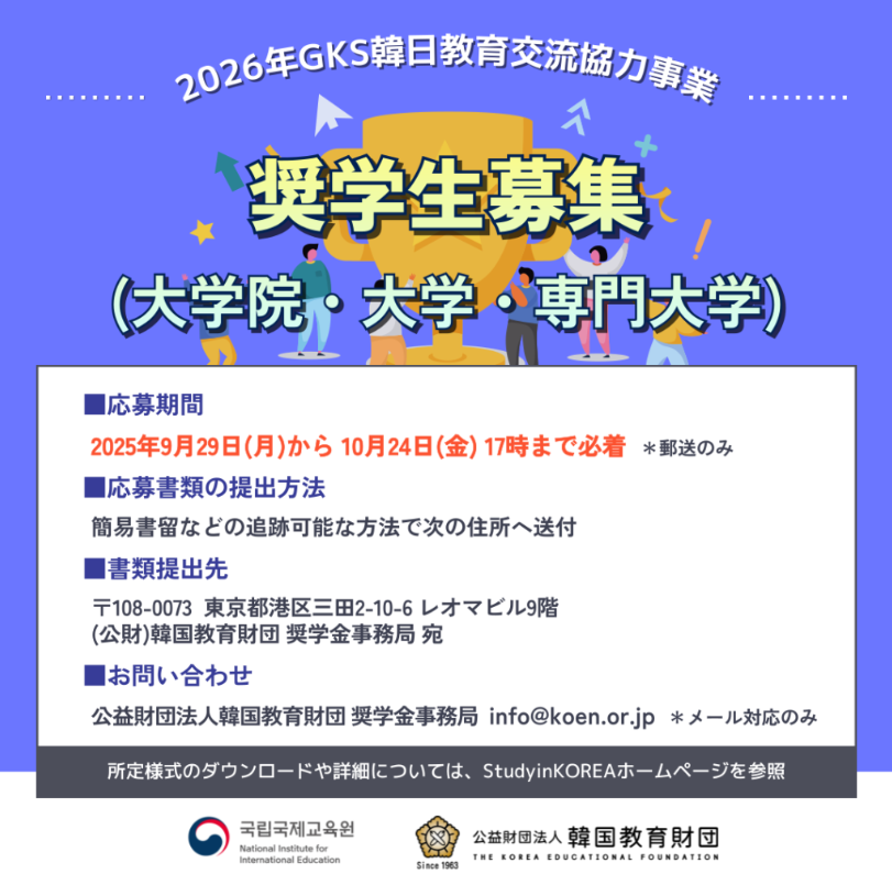 ※ Please refer to the attached 2026 Application Guidelines and the announcements from the Embassy of the Republic of Korea in Japan for more information.