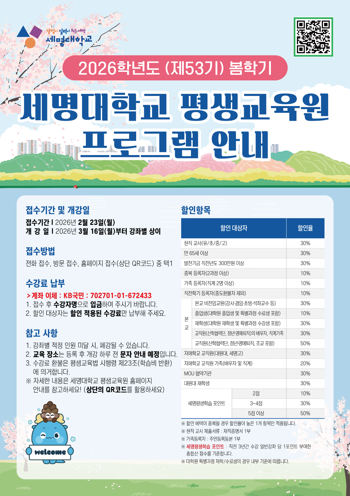 2026학년도 봄학기(제53기) 평생교육원 수강생 모집 안내