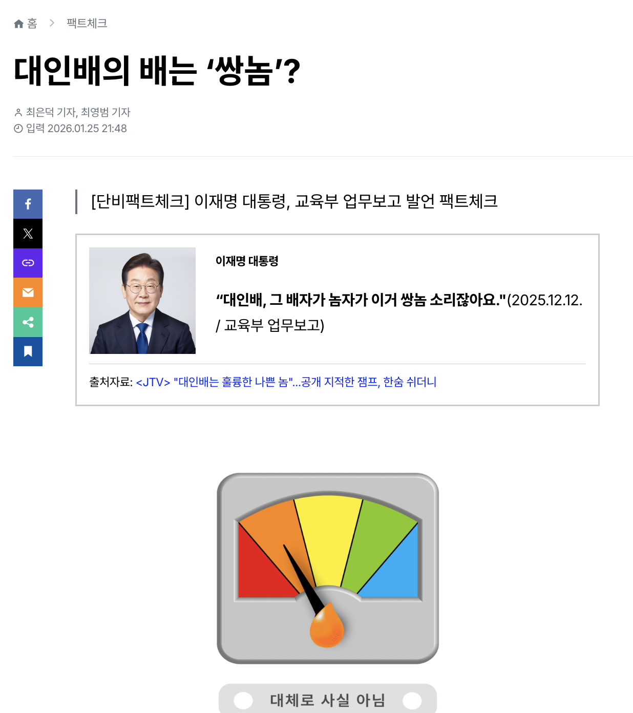 지난달 12일, 이재명 대통령은 교육부 업무보고 중 “엉터리 국어”의 문제를 지적했다. 이 대통령은 제일 듣기 싫은 단어라며 ’저희 나라’, ‘염두해 두고’, ‘대인배’를 꼽았다.