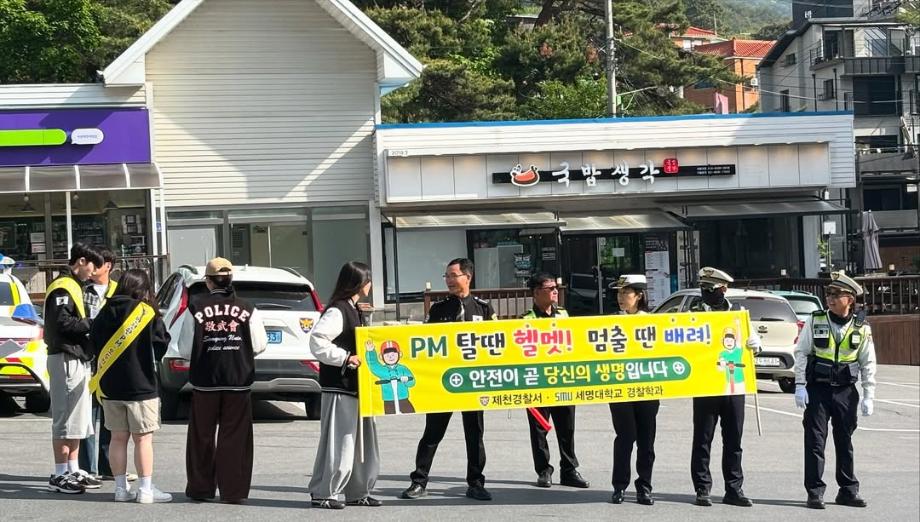본문 시작 홈으로 커뮤니티 학과소개 교수소개 학과과정 커뮤니티 홈페이지가이드 포토갤러리 학부공지 학과일정 포토갤러리 학생회 동아리 포토갤러리 페이스북 트위터 프린트 제천경찰서 합동 개인형 이동장치 안전운행 캠페인 경찰학과 465 2025-05-22 안녕하십니까 세명대학교 경찰학과 제23대 학생회 ‘개화’입니다. 지난 5월 8일, 제천경찰서와 함께 개인형 이동장치 안전운행 캠페인을 진행하였습니다. 개인형 이동장치의 운행을 안전하게 하도록 해당 포스터 및 팜플렛 등을 세명대학교 곳곳에서 학우분께 전달하고 알리는 활동을 하였습니다. 이번 캠페인에 참여하신 모든 학우분과 경찰관분께 감사의 말씀 전해드립니다.🍀 기타 문의 사항은 연락해 주시면 답변해 드리겠습니다. 목록 이전2025 경찰학과 체전 다음 단양중학교 대상 경찰학과 전공체험 만족도조사 만족도 조사 이 페이지에서 제공하는 정보에 대하여 만족하시나요? 매우만족 만족 보통 불만족 매우불만족