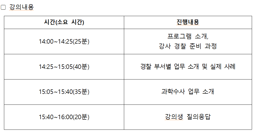 ▢ 주 제 : 현직자 실무경험 공유특강 ‘청년멘토특강’ - 경찰관
