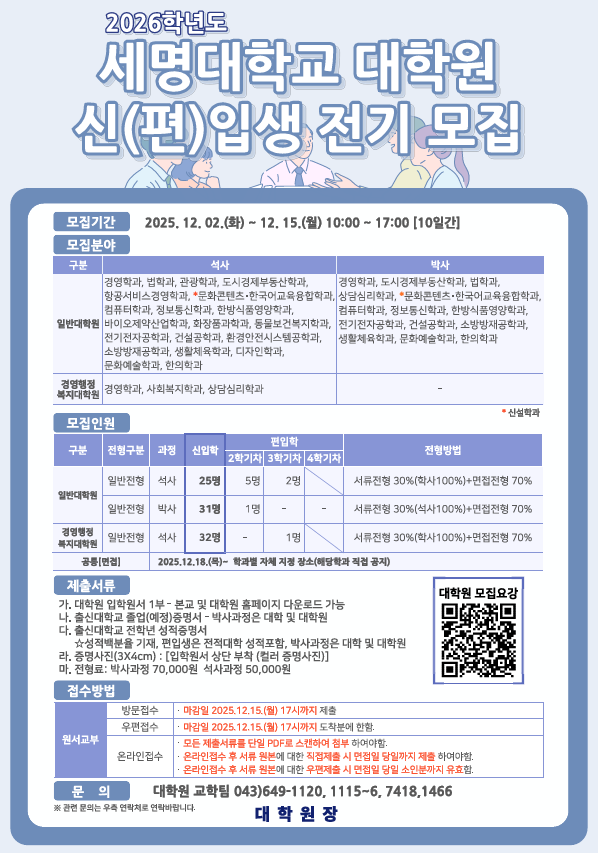 (충북 제천시 세명로 65, 문화관 111호 (대학원 교학팀)