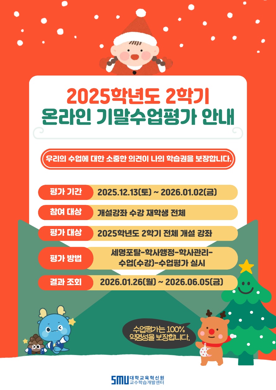 본문 시작 홈으로 커뮤니티 학부소개 진로·취업 교육과정 커뮤니티 대학원 입학상담 홈페이지가이드 공지사항 공지사항 갤러리 학생회 동문회 전공자료실 전공동아리 Youtube Instagram 공지사항 페이스북 트위터 프린트 [설문안내]❤️재학생 온라인 평가❤️ 2025-2학기 기말 수업평가 안내 바이오식품영양학부 조회 : 73 등록일 : 2025-12-15 목록 이전[모집안내] 동계방학기간 일반교내/외 국가근로장학 희망근로지 추가신청 안내 다음 [장학금안내] 2026학년도 1학기 농림축산식품부 청년창업농 장학금 안내 담당부서 : 바이오식품영양학부 담당자 : - 연락처 : 043-649-1578 최종수정일 : 2024-10-26 만족도조사 만족도 조사 이 페이지에서 제공하는 정보에 대하여 만족하시나요? 매우만족 만족 보통 불만족 매우불만족
