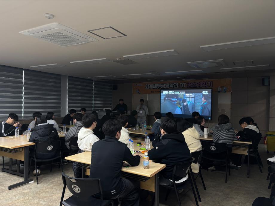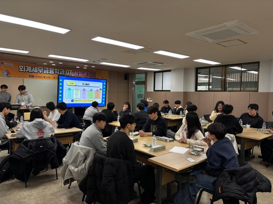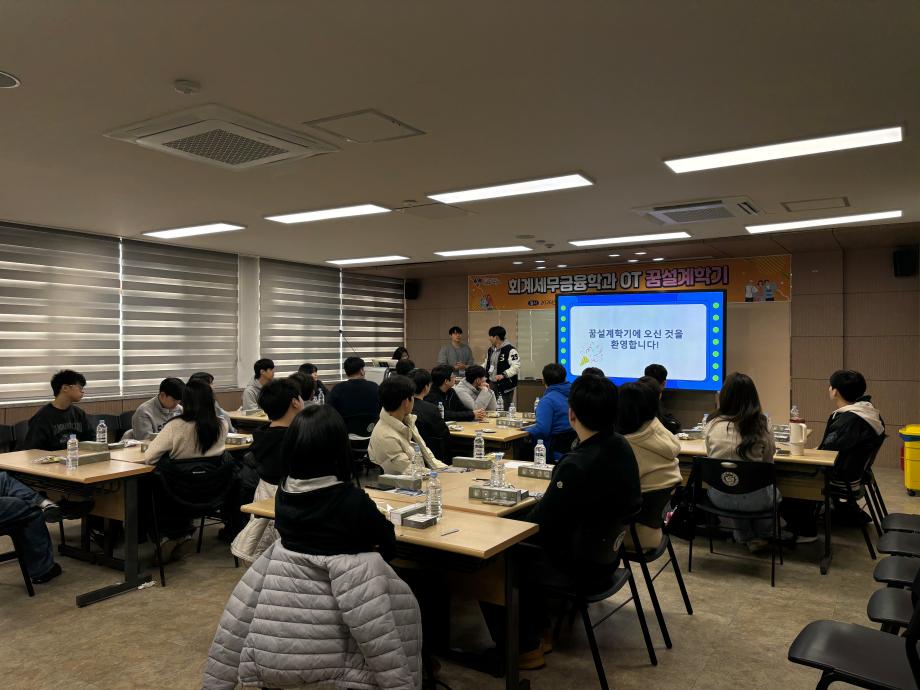 본문 시작 홈으로 학과소식 학과소개 취업정보 교육과정 학과소식 홈페이지가이드 학과행사 공지사항 포토갤러리 학과이야기 학과행사 학과행사 페이스북 트위터 프린트 2026 회계세무금융학과 꿈설계학기 회계세무금융학과 153 2026-02-26 2026.02.23(월)~2026.02.25(수) 회계세무금융학과 꿈설계학기를 진행하였습니다! 회계세무금융학과 학생분들 입학을 축하드립니다❤️ 목록 이전2025학년도 2학기 기말고사 간식사업 다음 회계세무금융학과 개강파티 만족도조사 만족도 조사 이 페이지에서 제공하는 정보에 대하여 만족하시나요? 매우만족 만족 보통 불만족 매우불만족