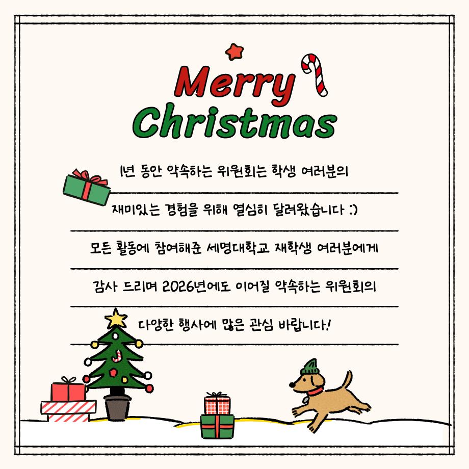 본문 시작 홈으로 포토갤러리 학생위원회 개요 학생위원회 소개 공지사항 활동결과 홈페이지가이드 포토갤러리 페이스북 트위터 프린트 [약속하는,생각하는 위원회] 세명파티시에 학술정보원 14 2025-11-17 안녕하세요 재미있는 경험을 위한 학생위원회 '약속하는 위원회' 입니다! 약속하는 위원회 행사인 세명 파티시에 활동이 성황리에 마무리 되었습니다 :) [세명 파티시에 행사 결과] 일시: 2025년 11월 11일(월) ~ 11월 12일(화) 장소: 도서관 1층 로비 행사 참여자: 85명 1년 동안 약속하는 위원회와 함께 해주셔서 감사드리며, 추후에 이어질 약속하는 위원회 활동에도 많은 관심 바랍니다!! 목록 이전[꽃피는 위원회] 꽃 돌려라 피어라 담당부서 : 장학복지팀 담당자 : 김효정 연락처 : 043-649-1142 최종수정일 : 2024-10-26 만족도조사 만족도 조사 이 페이지에서 제공하는 정보에 대하여 만족하시나요? 매우만족 만족 보통 불만족 매우불만족