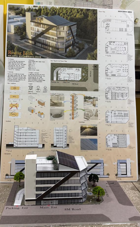 본문 시작 홈으로 커뮤니티 학과소개 교수소개 교육과정 학과 행사 및 활동 커뮤니티 홈페이지가이드 열린정보 학과일정 학과공지 채용정보 및 자료 열린정보 포토갤러리 먹거리, 즐길거리 포토갤러리 사진 사진 영상 사진 페이스북 트위터 프린트 사진 영상 2학년 기말 설계과제 건축학과 119 2025-12-23 2학년 설계 스튜디오 주제는 🏢 근린생활시설. 일상과 도시 사이에서 사람들의 활동을 담아내는 공간을 제안했습니다. 목록 이전3학년 기말 설계과제 다음 1학년 기말 설계과제 만족도조사 만족도 조사 이 페이지에서 제공하는 정보에 대하여 만족하시나요? 매우만족 만족 보통 불만족 매우불만족