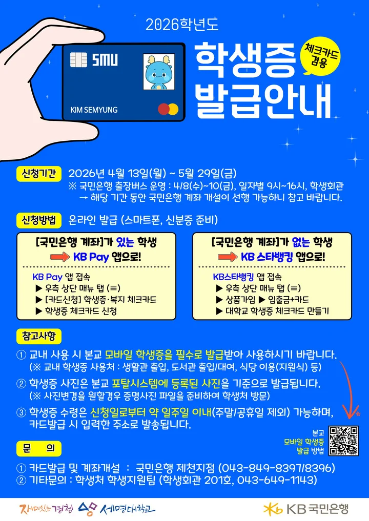 2026학년도 세명대학교 학생증 발급 안내